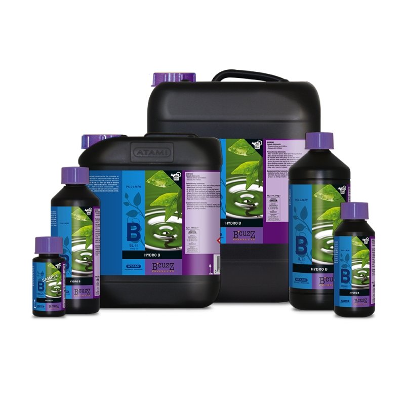 El B’cuzz Hydro Nutrition A+B ha sido concebido especialmente para el cultivo hidropónico, en el cual el agua nutriente se filtra a través del sustrato y no se reutiliza. El B’cuzz Hydro Nutrition A+B se utiliza muy a menudo en el cultivo en lana de roca y mapito. Se trata de un alimento profesional bio-mineral que aporta estabilidad y equilibrio biológico al sustrato. Para ello, el alimento B’cuzz Hydro Nutrition A+B contiene prácticamente todos los nutrientes necesarios para el ciclo de crecimiento completo.