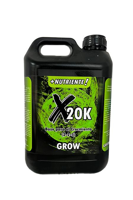 Grow X20K es la base nutricional de la gama X20K diseñada específicamente para la fase de crecimiento. Su fórmula 2-2-5 proporciona un aporte equilibrado de nitrógeno, fósforo y potasio, esenciales para un desarrollo sano y vigoroso de la planta.