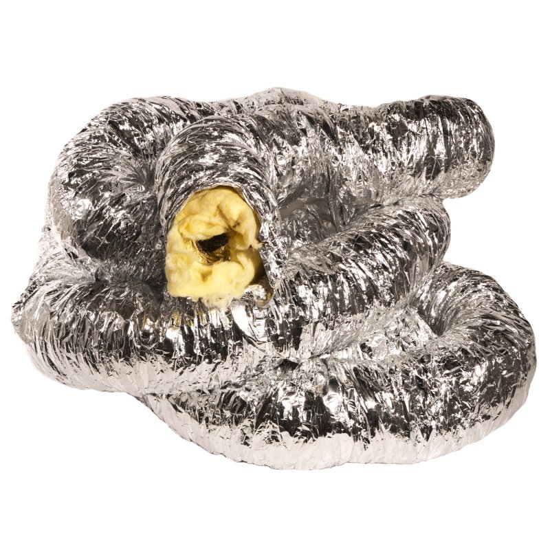 Tubo flexible para conductos que reduce drásticamente la emisión de ruido de los ventiladores del extractor. Básicamente es un ducting reforzado con fibra de vidrio, que amortigua y absorbe el sonido del aire.